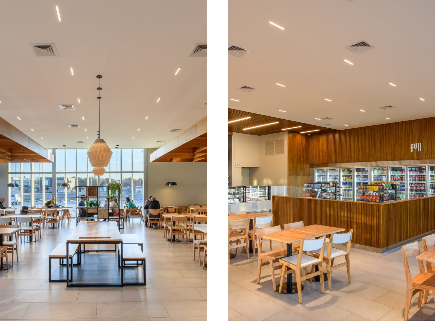 YPF Full — Ruta E-53 Km 12 (Unquillo, Córdoba). Proyecto diseñado por el Arq. Juan La Provitta que integra control solar y materiales de fachada de última generación en un concepto de estación eficiente y sustentable. Nuestra empresa se encargó del aprovisionamiento de la iluminación —luminarias para canopy, tienda y fachada— y la coordinación técnica para su puesta en marcha.